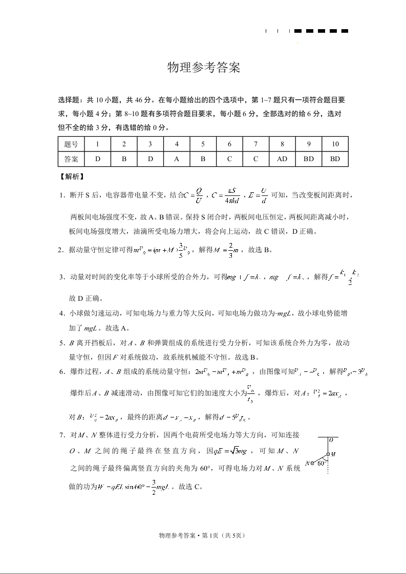 云南师范大学附属中学2025届高三高考适应性月考卷(五)物理(B卷)答案