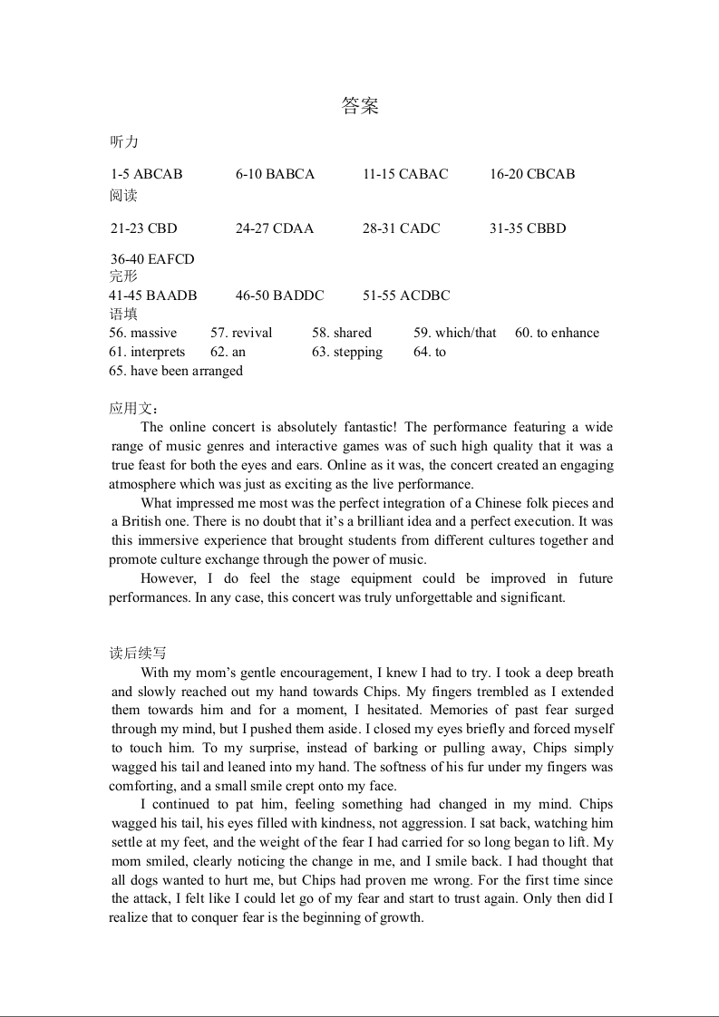 云南省玉溪市一中2025届高三上学期11月期中考试英语答案