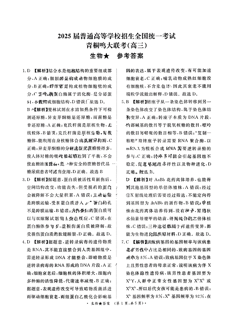 河南省部分重点高中2025届高三年级11月大联考生物答案