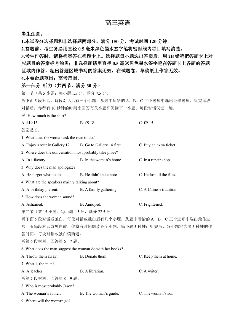 河南省区域高中2025届高三年级11月质量检测(九师联盟)英语+答案
