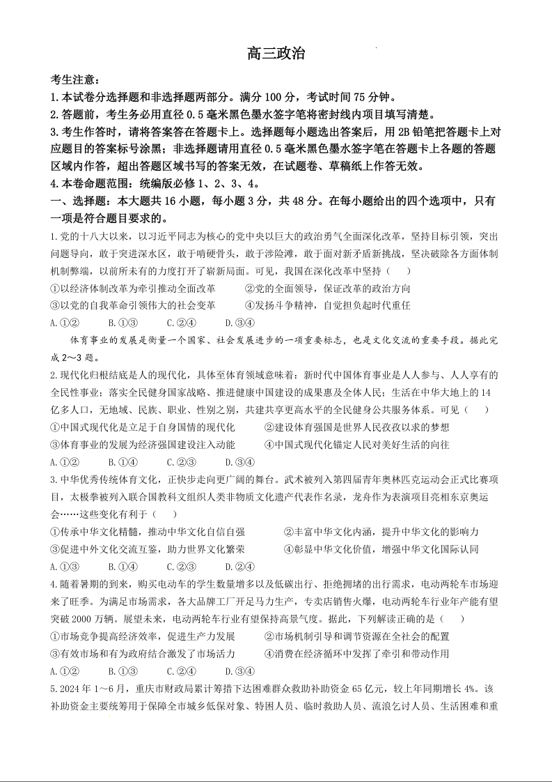 河南省区域高中2025届高三年级11月质量检测(九师联盟)政治+答案