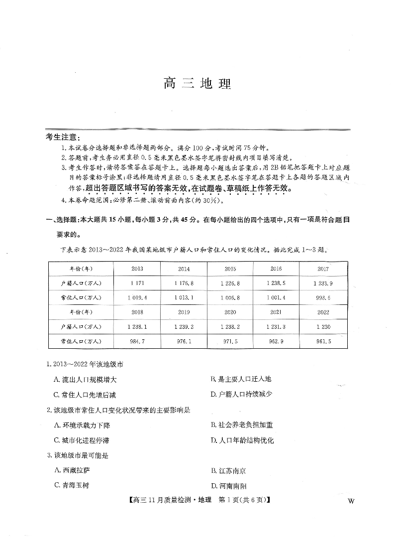 河南省区域高中2025届高三年级11月质量检测(九师联盟)地理
