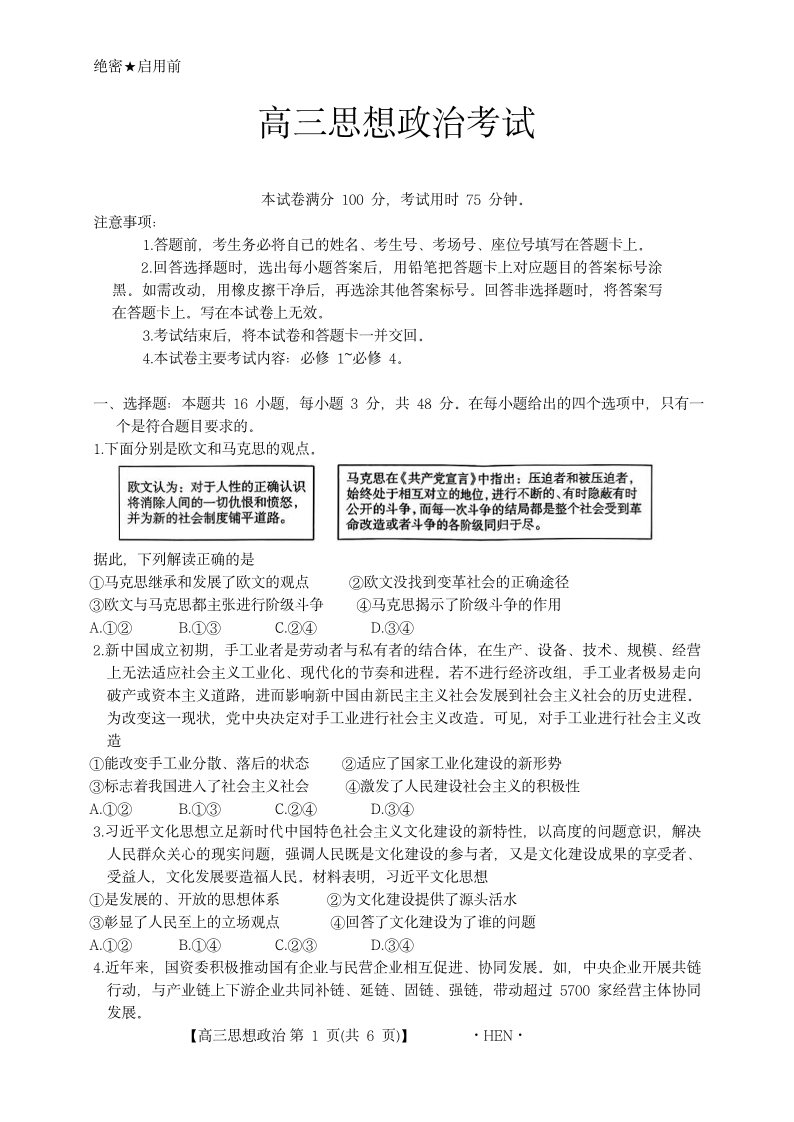 河南省驻马店市2024.11高三年级上学期期中考试政治+答案