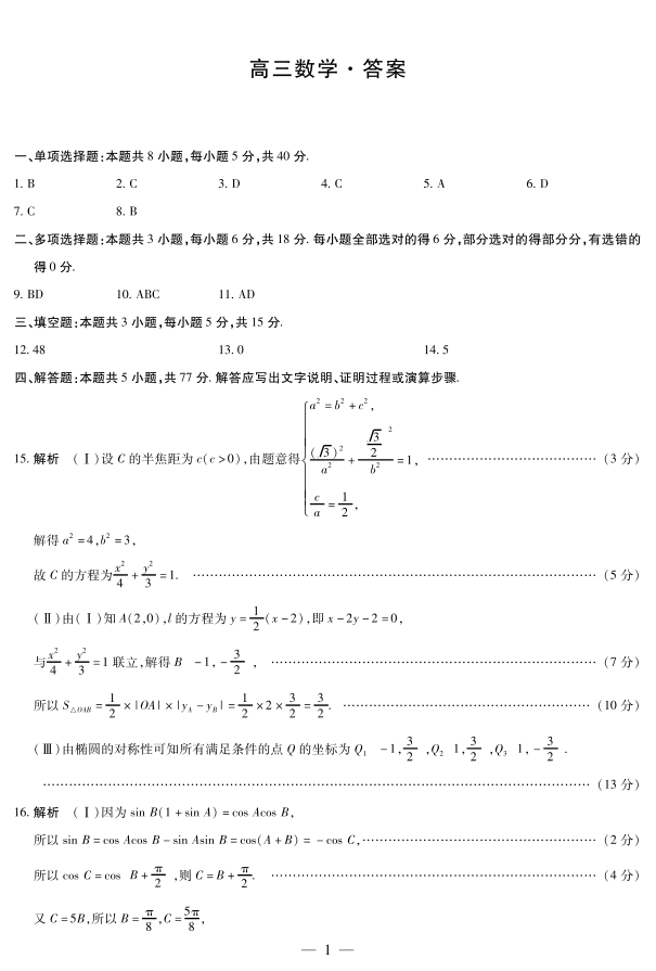 湖南省湘一名校联盟2025届高三11月联考联评数学答案