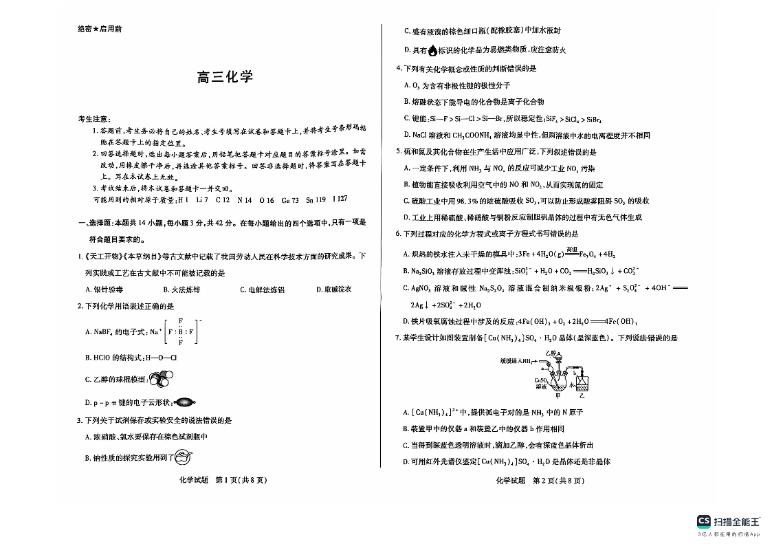 湖南省湘一名校联盟2025届高三11月联考联评化学