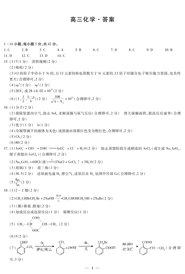 湖南省湘一名校联盟2025届高三11月联考联评化学答案