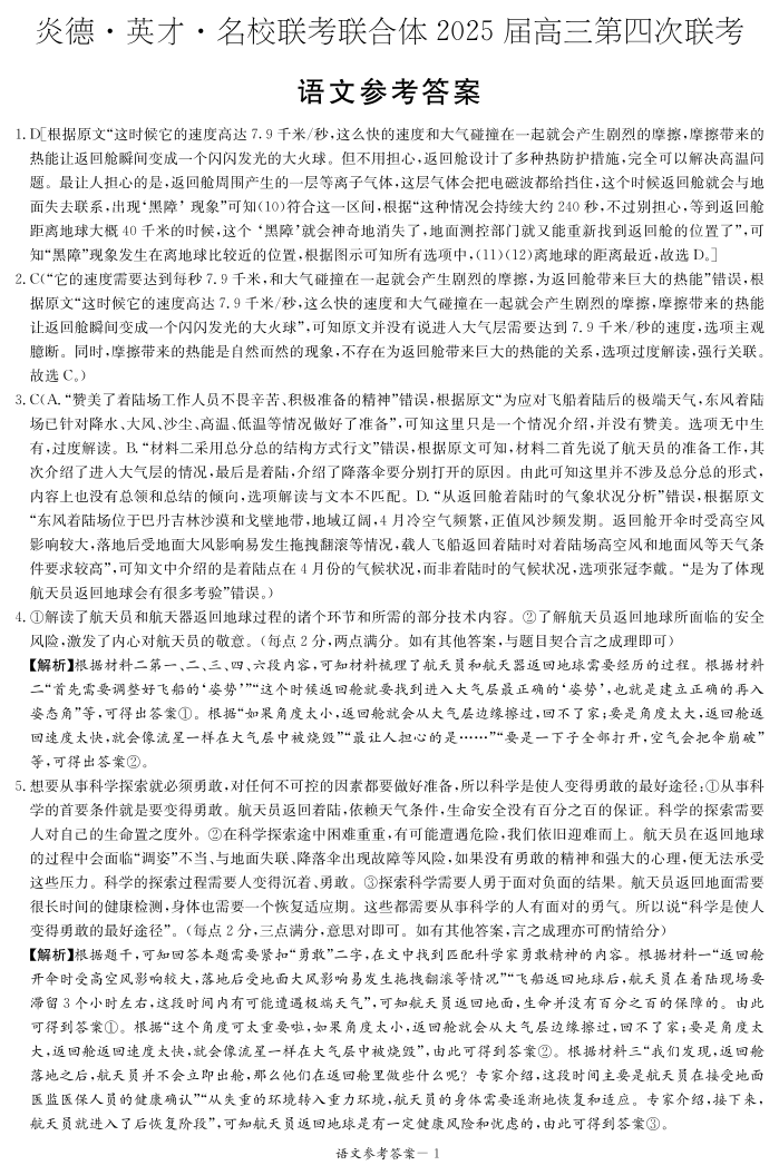 湖南省炎德英才名校联考联合体2025届高三第四次联考语文