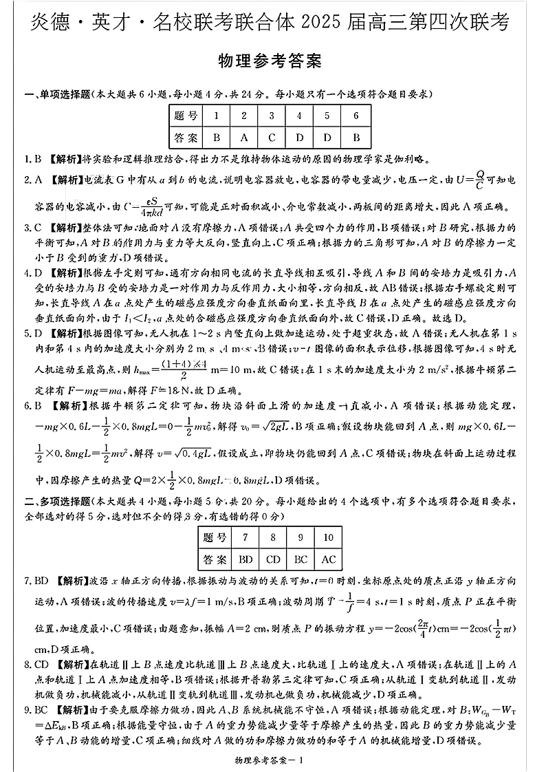 湖南省炎德英才名校联考联合体2025届高三第四次联考物理答案