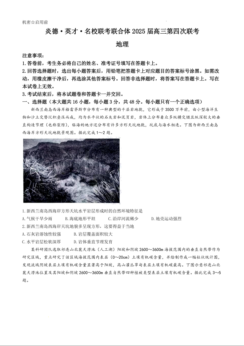 湖南省炎德英才名校联考联合体2025届高三第四次联考地理