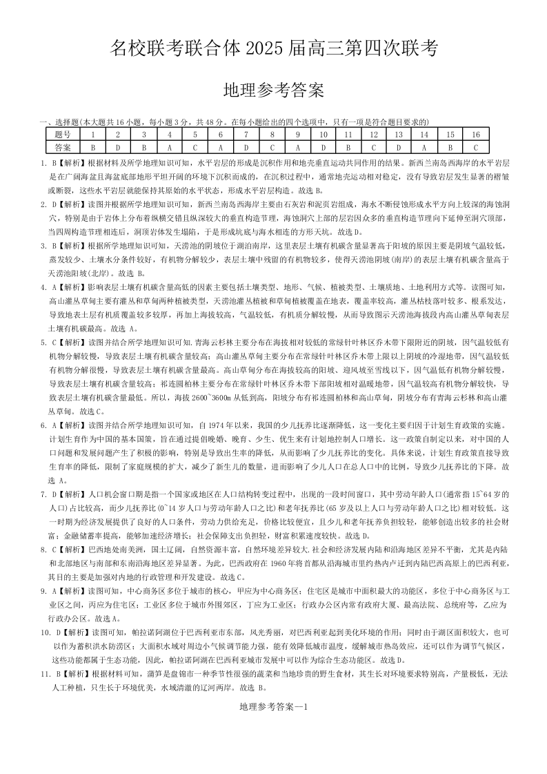 湖南省炎德英才名校联考联合体2025届高三第四次联考地理答案