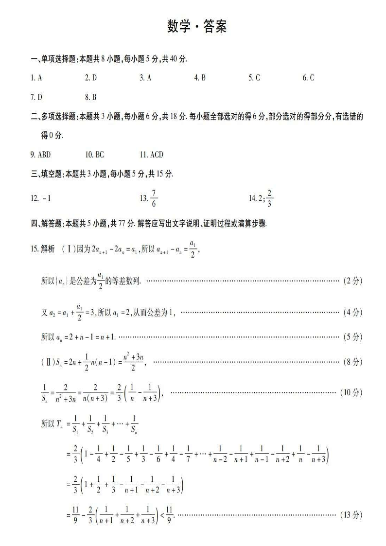 安徽省卓越县中联盟2025届高三11月期中考试数学答案