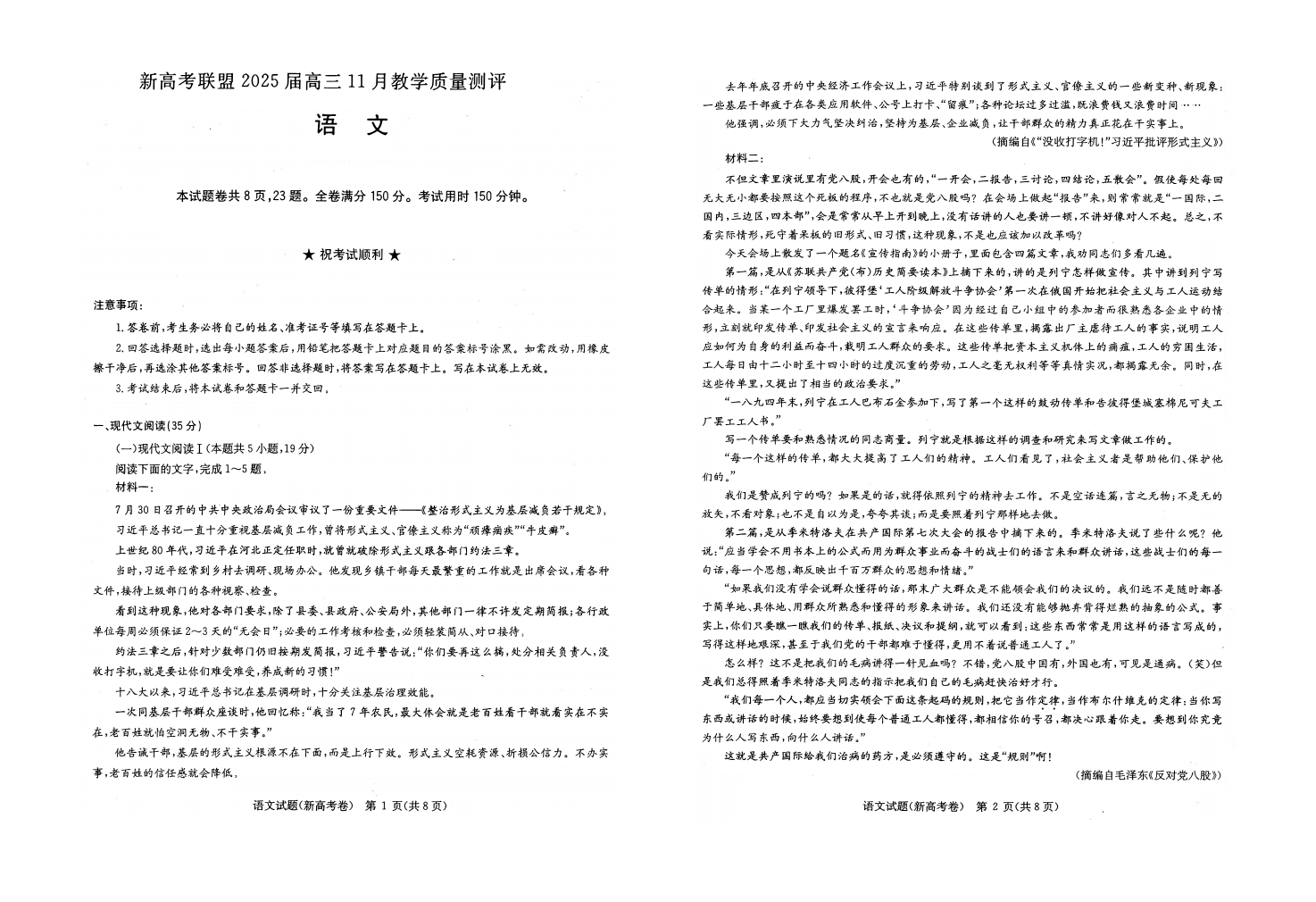 湖北省华大新高考联盟2025届高三11月教学质量测评语文