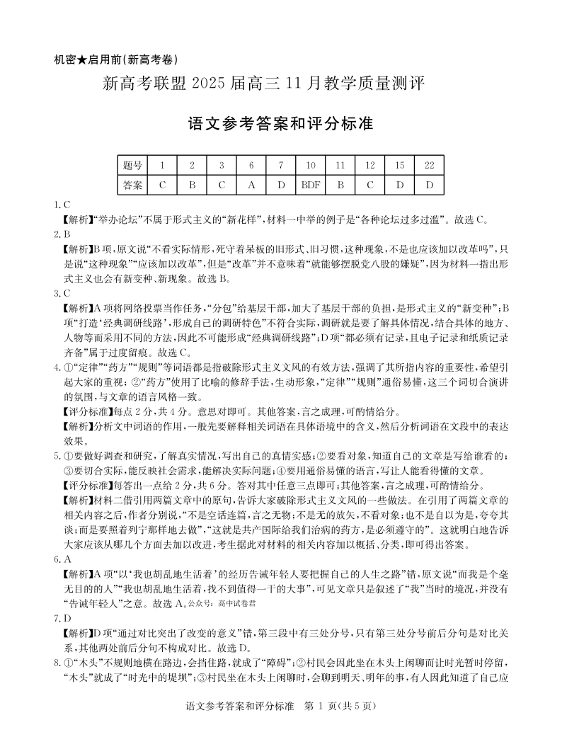湖北省华大新高考联盟2025届高三11月教学质量测评语文答案