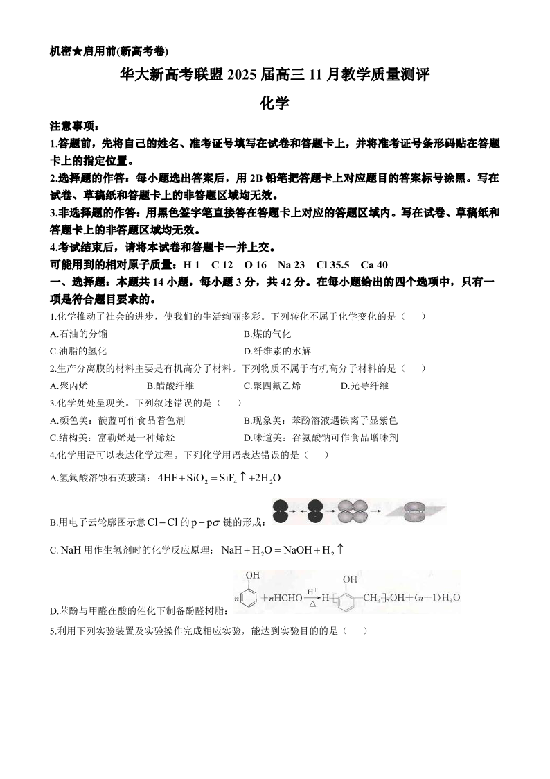 湖北省华大新高考联盟2025届高三11月教学质量测评化学+答案