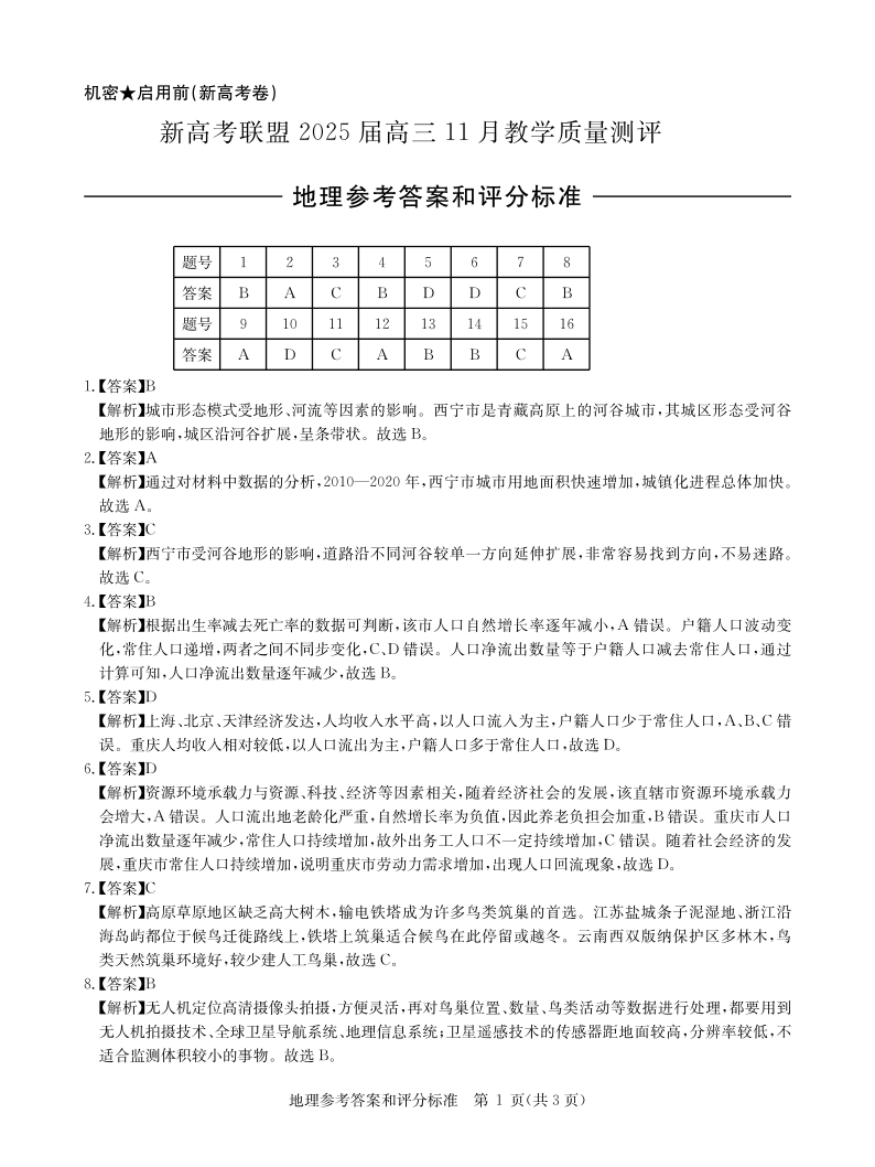 湖北省华大新高考联盟2025届高三11月教学质量测评地理答案