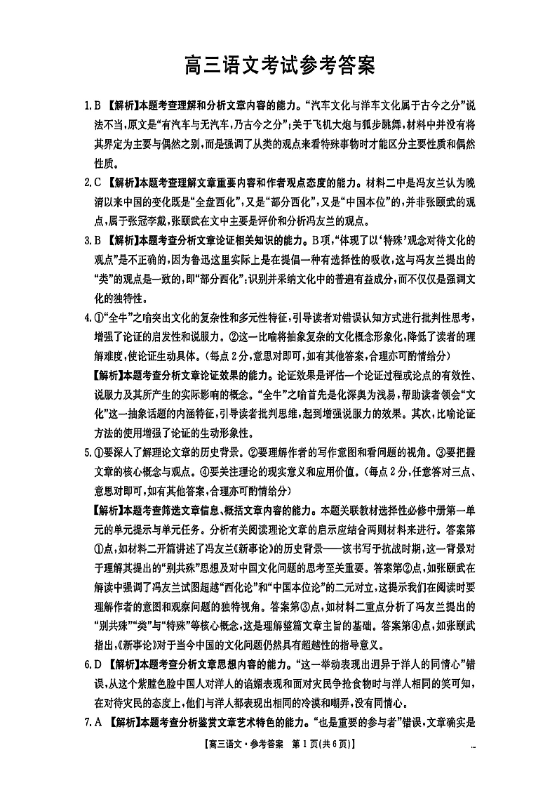 广东省部分高中学校2024-2025学年高三上学期11月期中语文答案