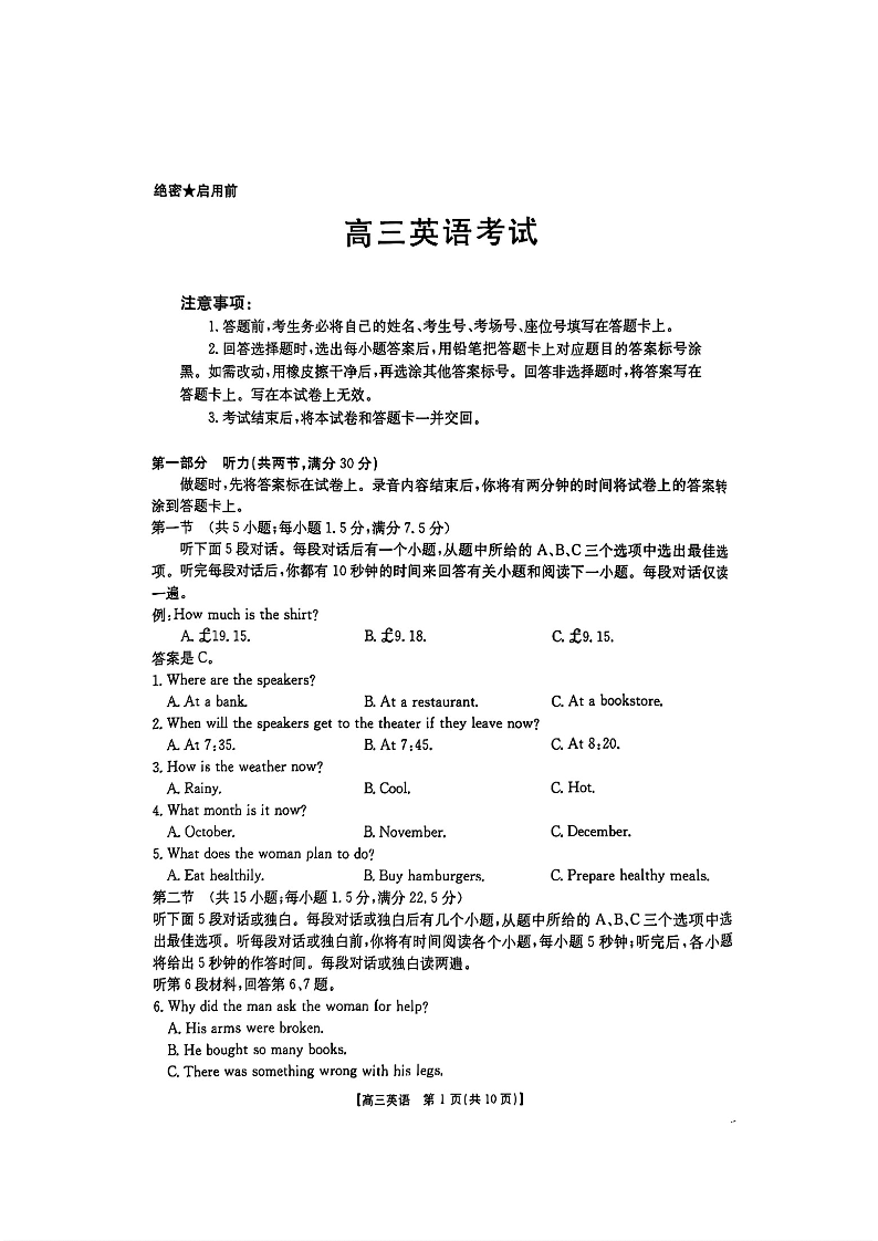 广东省部分高中学校2024-2025学年高三上学期11月期中英语+答案