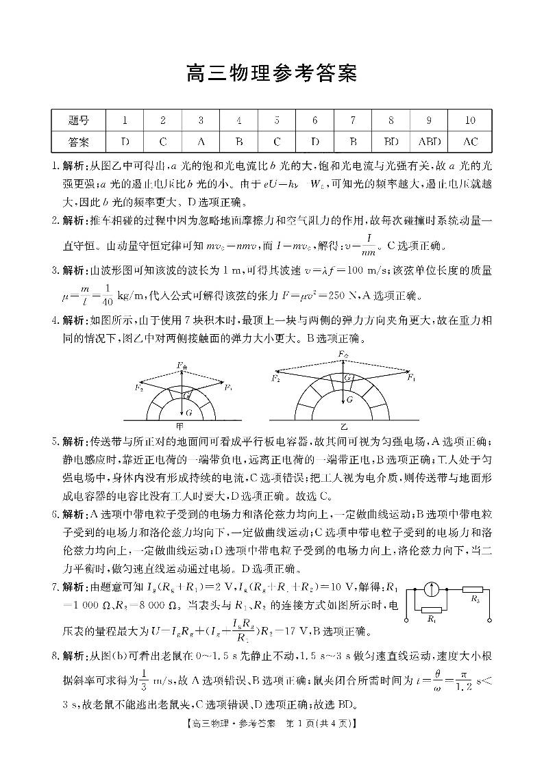 广东省部分高中学校2024-2025学年高三上学期11月期中物理答案