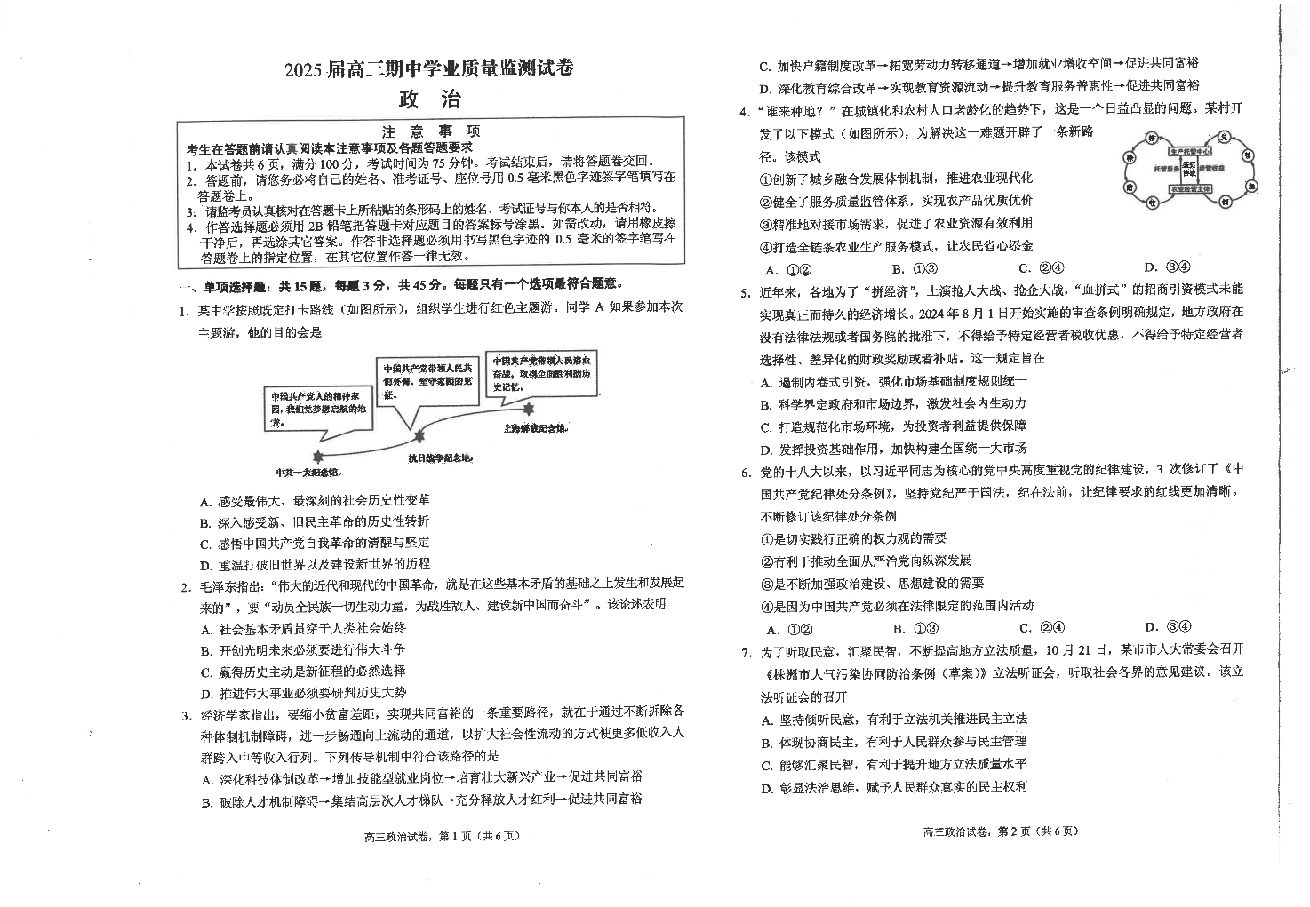 江苏省海安高级中学2025届高三上学期期中考试政治+答案