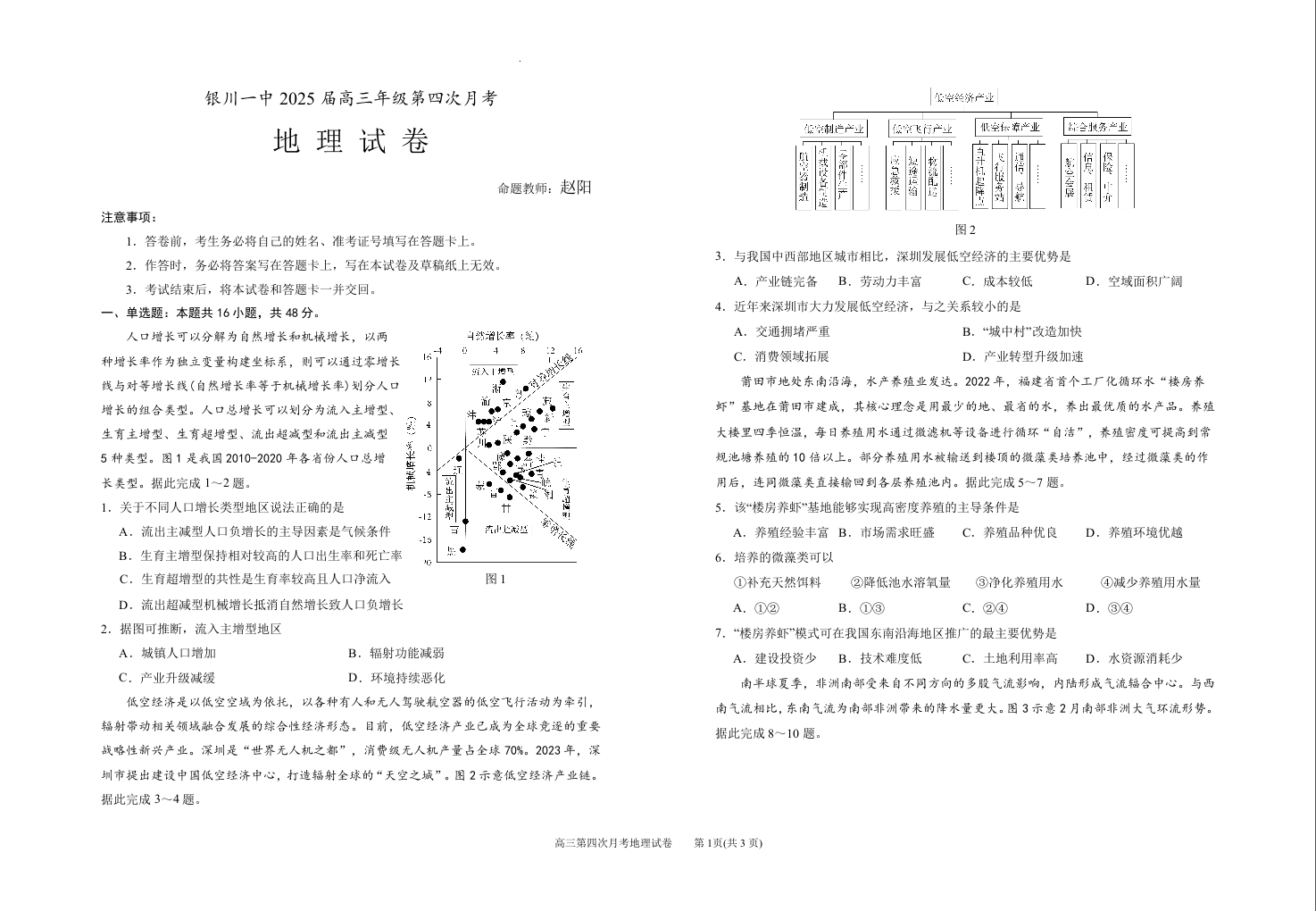 宁夏回族自治区银川一中2025届高三上学期第四次月考地理