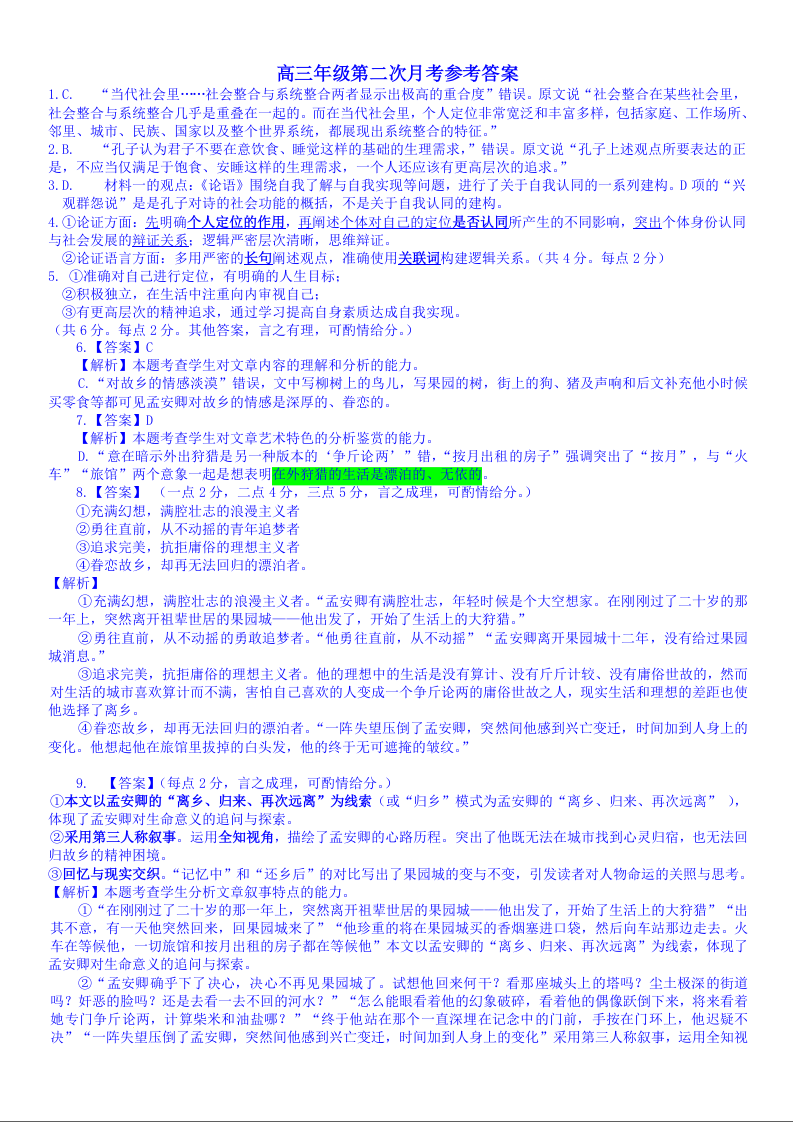 江西省南昌市第二中学2025届高三上学期月考(二)语文答案