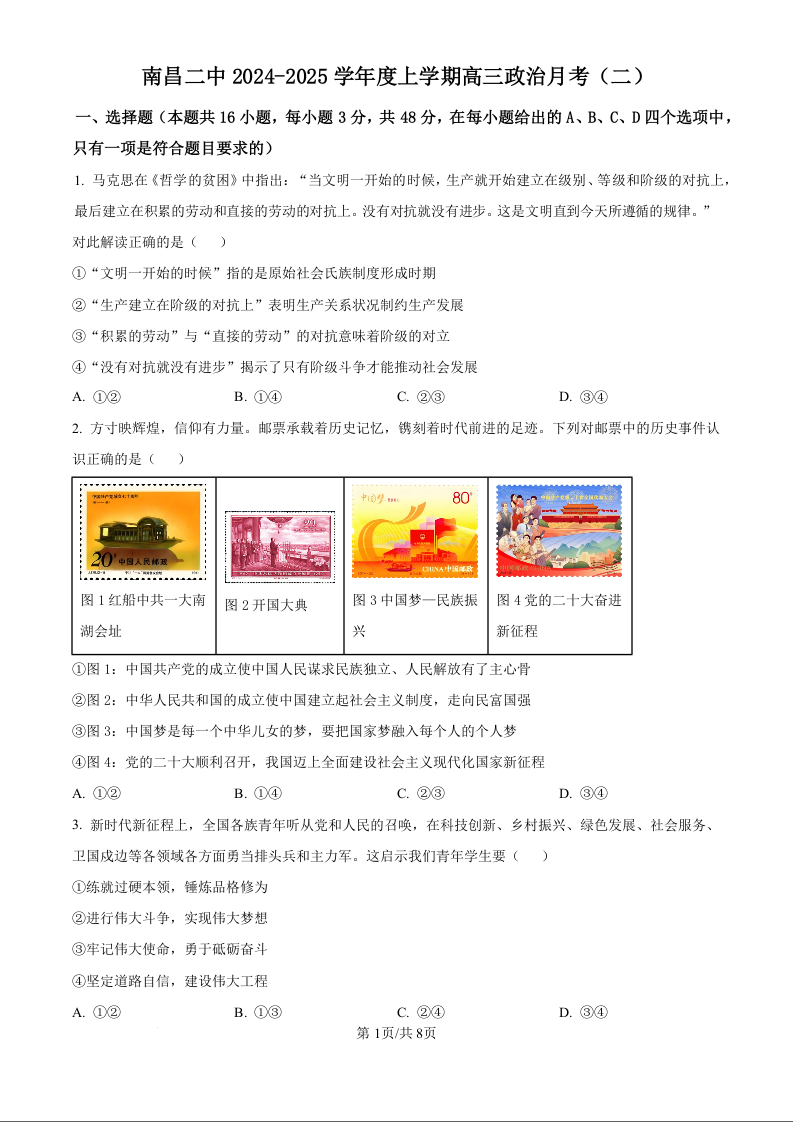 江西省南昌市第二中学2025届高三上学期月考(二)政治