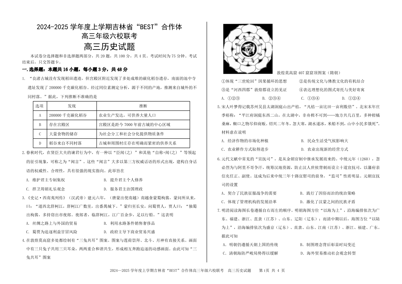 吉林省“BEST”合作体六校2025届高三上学期第三次联考历史