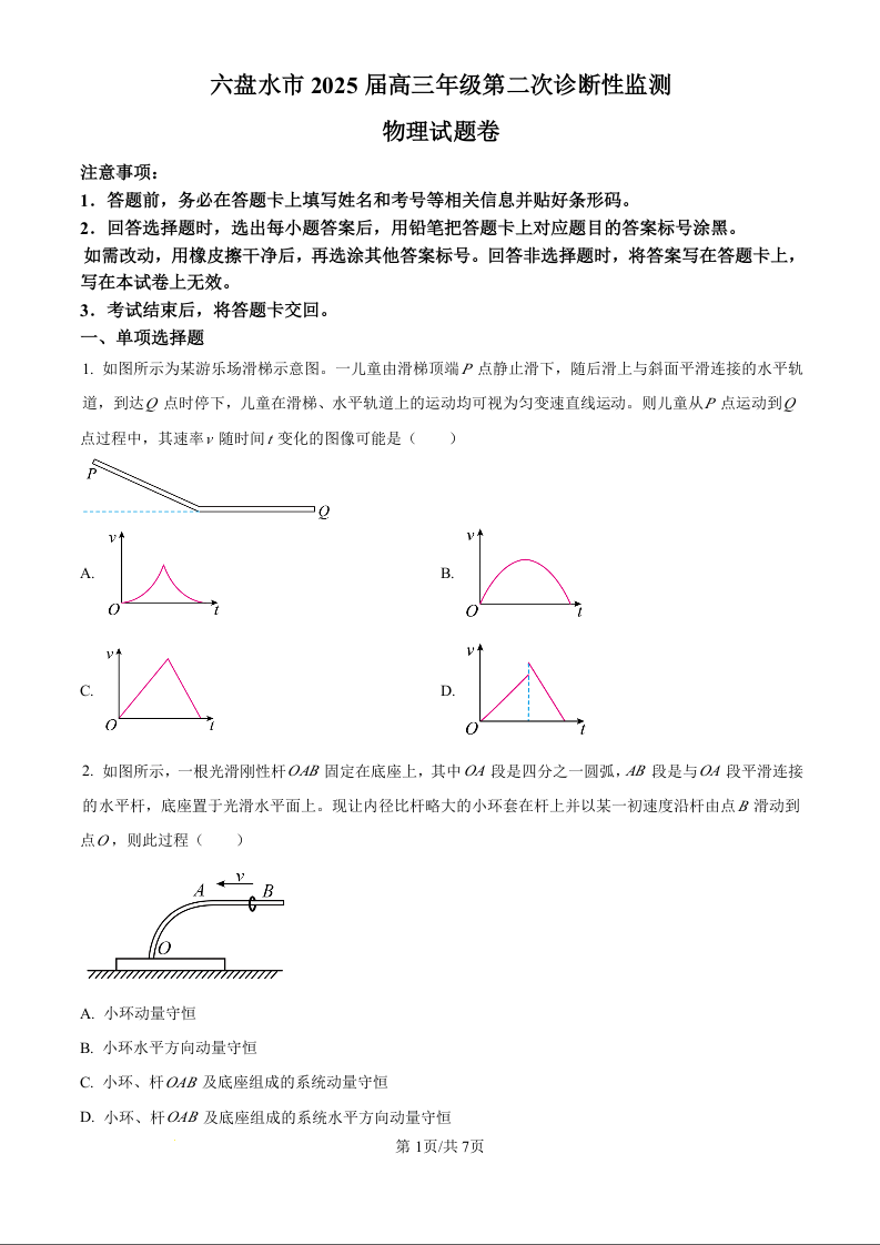贵州省六盘水市2025届高三上学期第二次诊断性监测物理