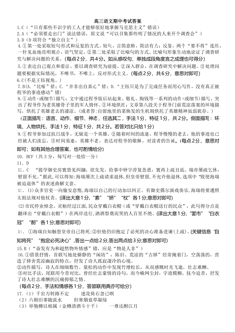 山东省淄博市临淄中学2025届高三上学期期中考试语文答案