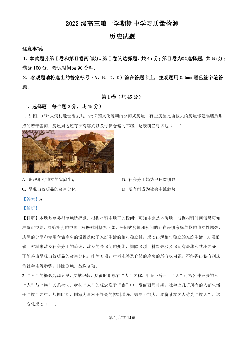山东省淄博市临淄中学2025届高三上学期期中考试历史(精品解析版)