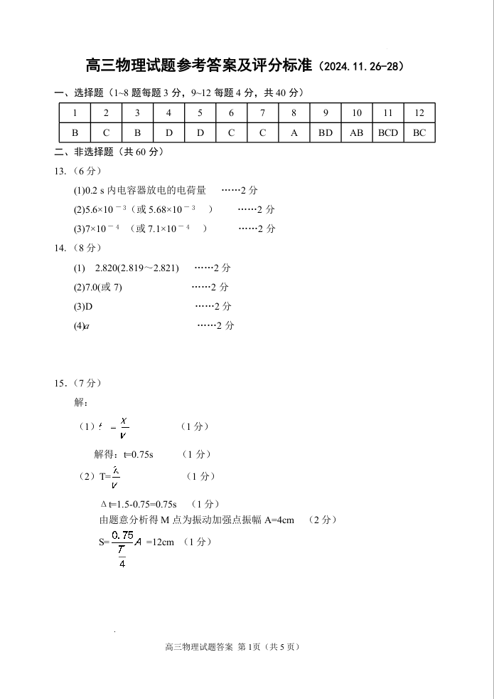山东省威海市文登2025届高三上学期第一次模拟考试物理答案