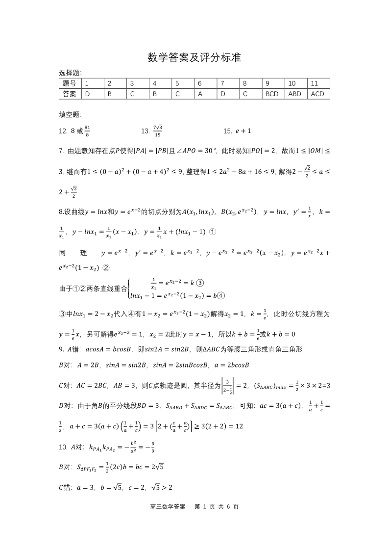 辽宁省大连市滨城高中联盟2025届高三上学期期中Ⅱ考试数学答案