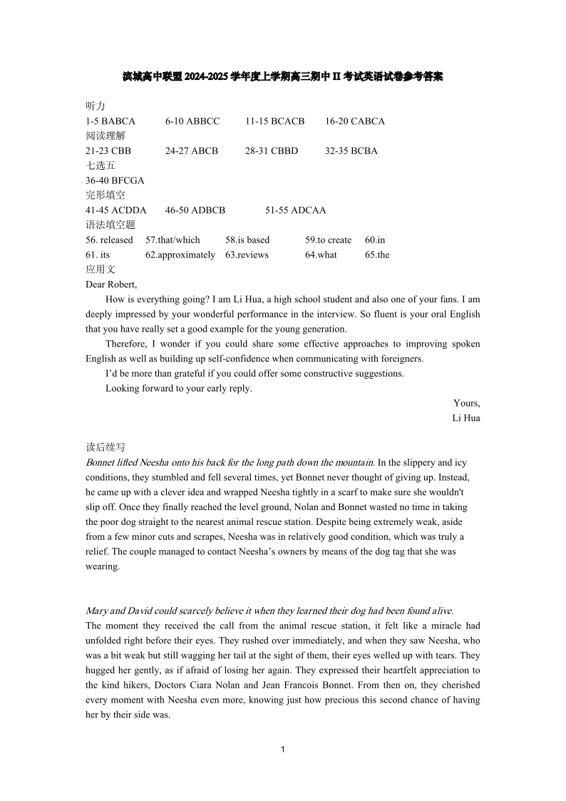 辽宁省大连市滨城高中联盟2025届高三上学期期中Ⅱ考试英语答案