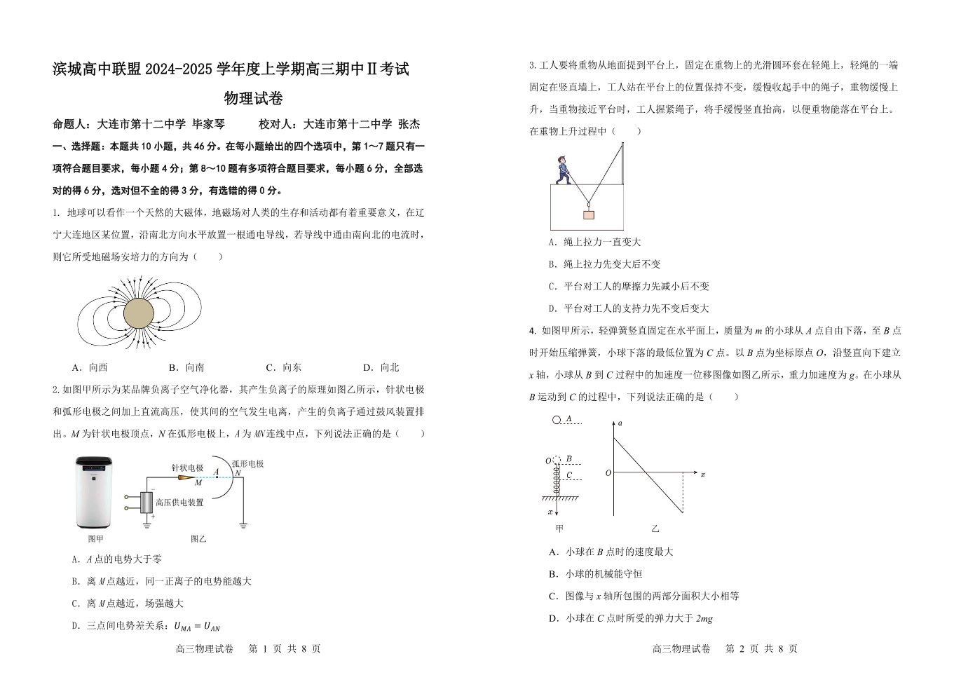 辽宁省大连市滨城高中联盟2025届高三上学期期中Ⅱ考试物理