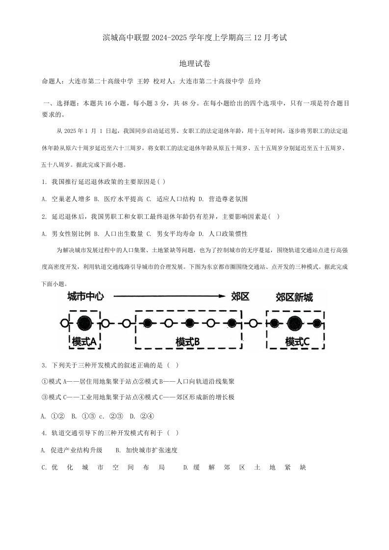 辽宁省大连市滨城高中联盟2025届高三上学期期中Ⅱ考试地理