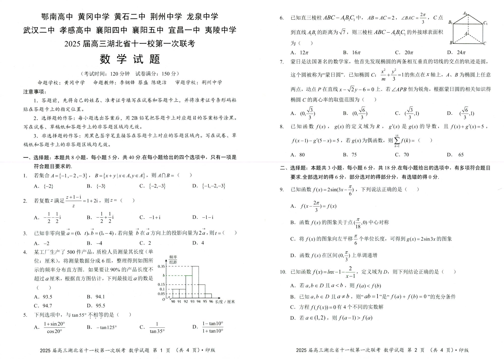 湖北省2025届高三十一校第一次联考数学