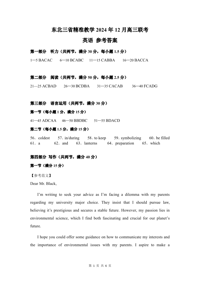 东北三省精准教学2025届高三上学期12月联考(强化卷)英语答案