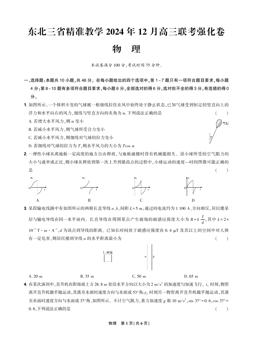 东北三省精准教学2025届高三上学期12月联考(强化卷)物理