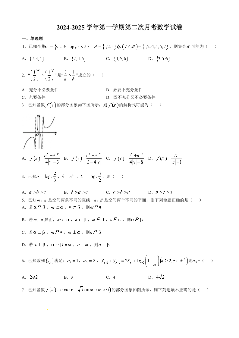 天津市第二十五中学2025届高三上学期第二次月考数学(精品解析版)