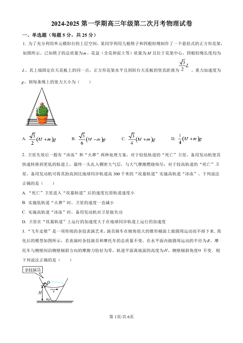 天津市第二十五中学2025届高三上学期第二次月考物理(原卷版)