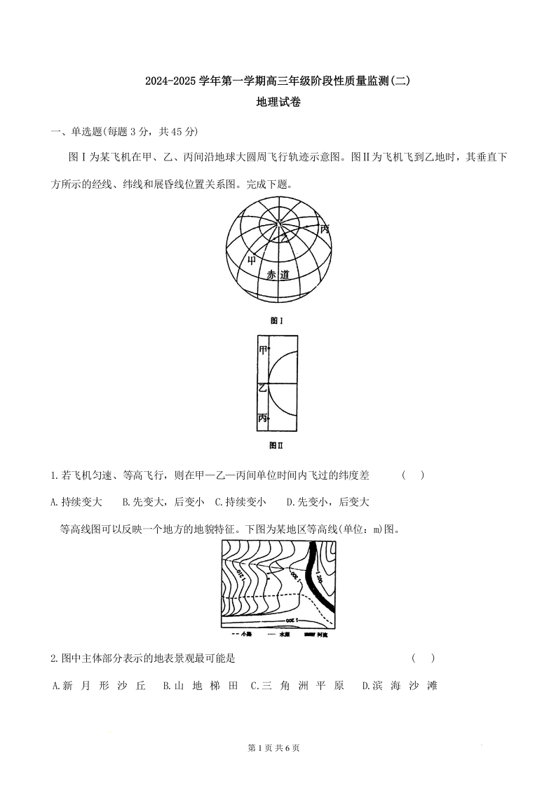 天津市第二十五中学2025届高三上学期第二次月考地理