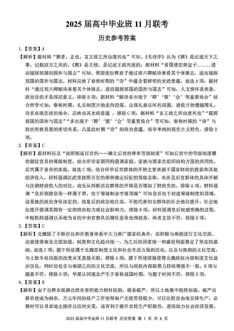 广西省新课程教研联盟2025届高三毕业班11月联考历史答案