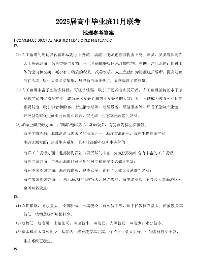 广西省新课程教研联盟2025届高三毕业班11月联考地理答案