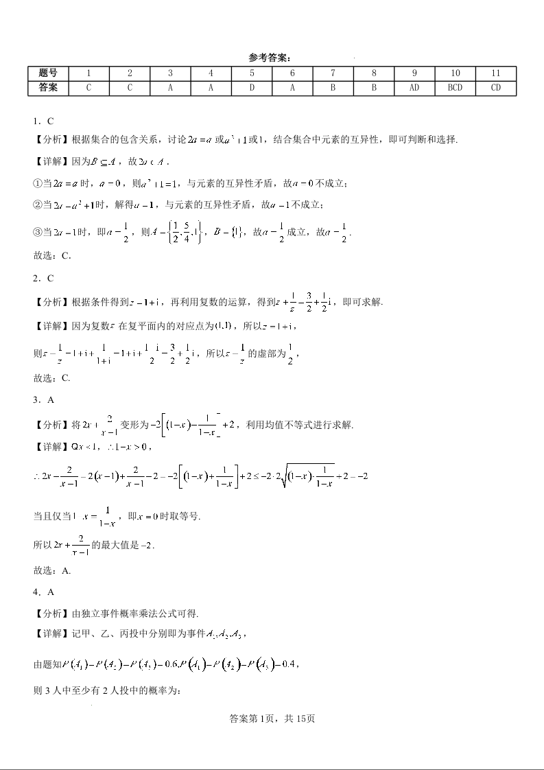 云南省昆明市第三中学2024-2025学年高三上学期11月月考数学答案