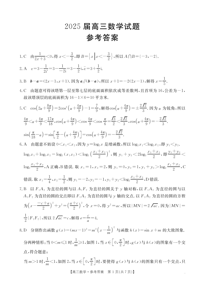 四川省部分学校2024-2025学年高三12月联考数学答案