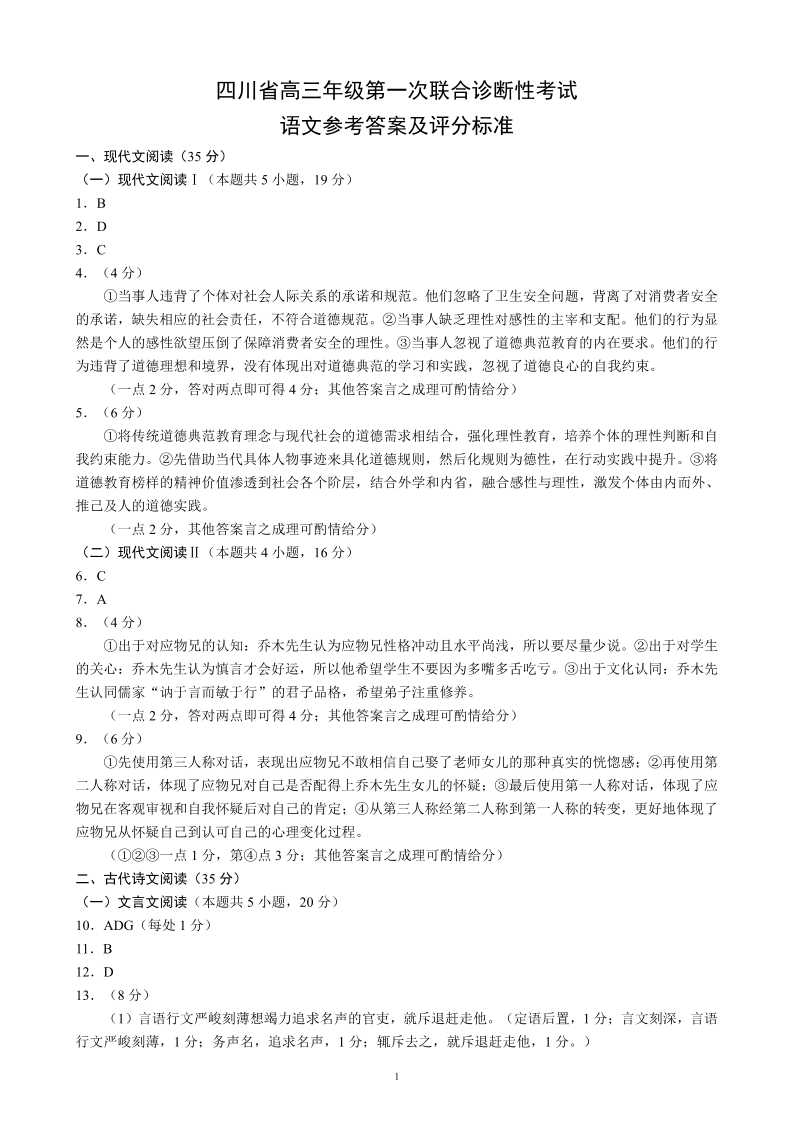 四川省成都市区域名校2025届高三上学期第一次联合性诊断性考试语文答案