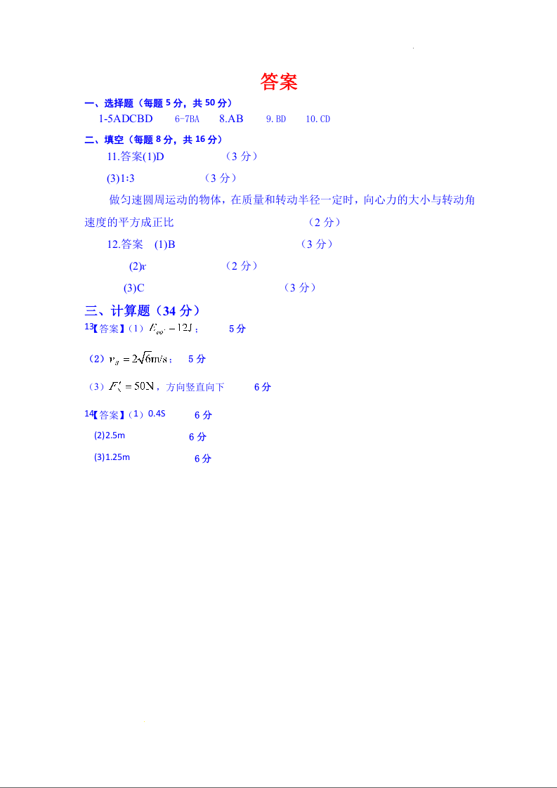 甘肃省兰州市第一中学2025届高三上学期12月月考物理答案