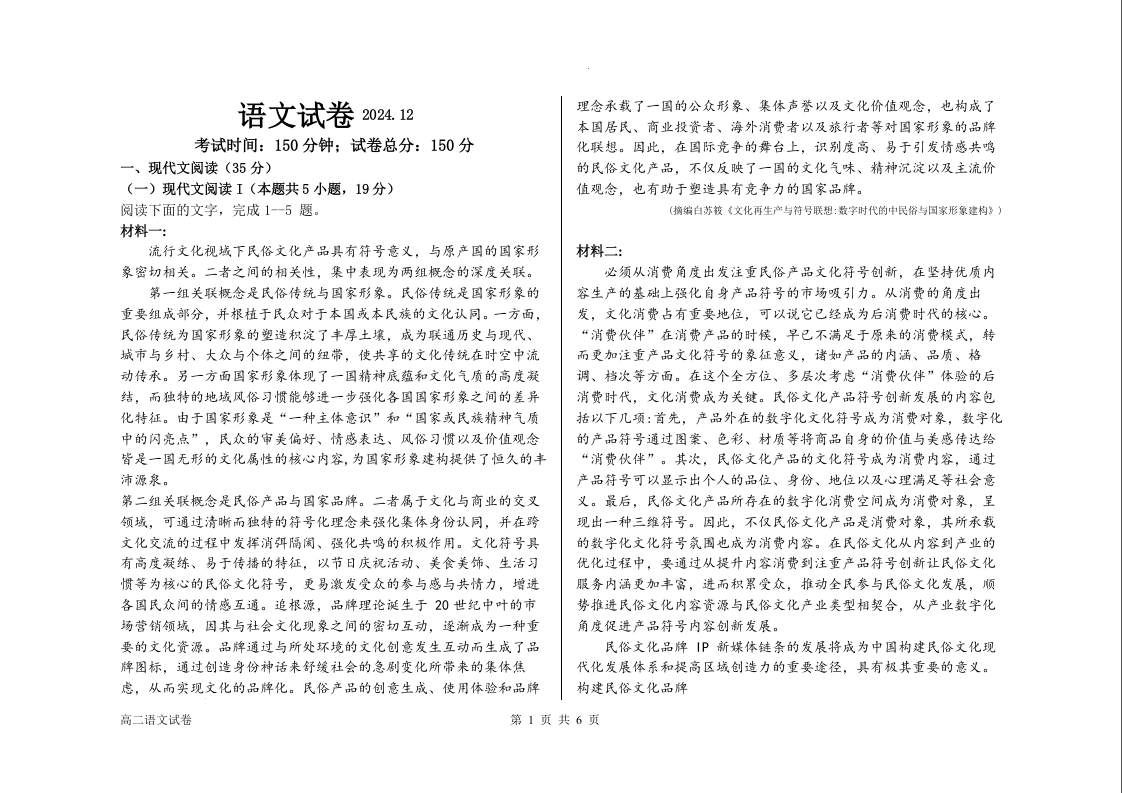 黑龙江省佳木斯市第八中学2025届高三上学期12月月考语文