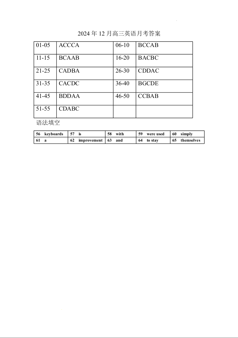 黑龙江省佳木斯市第八中学2025届高三上学期12月月考英语答案