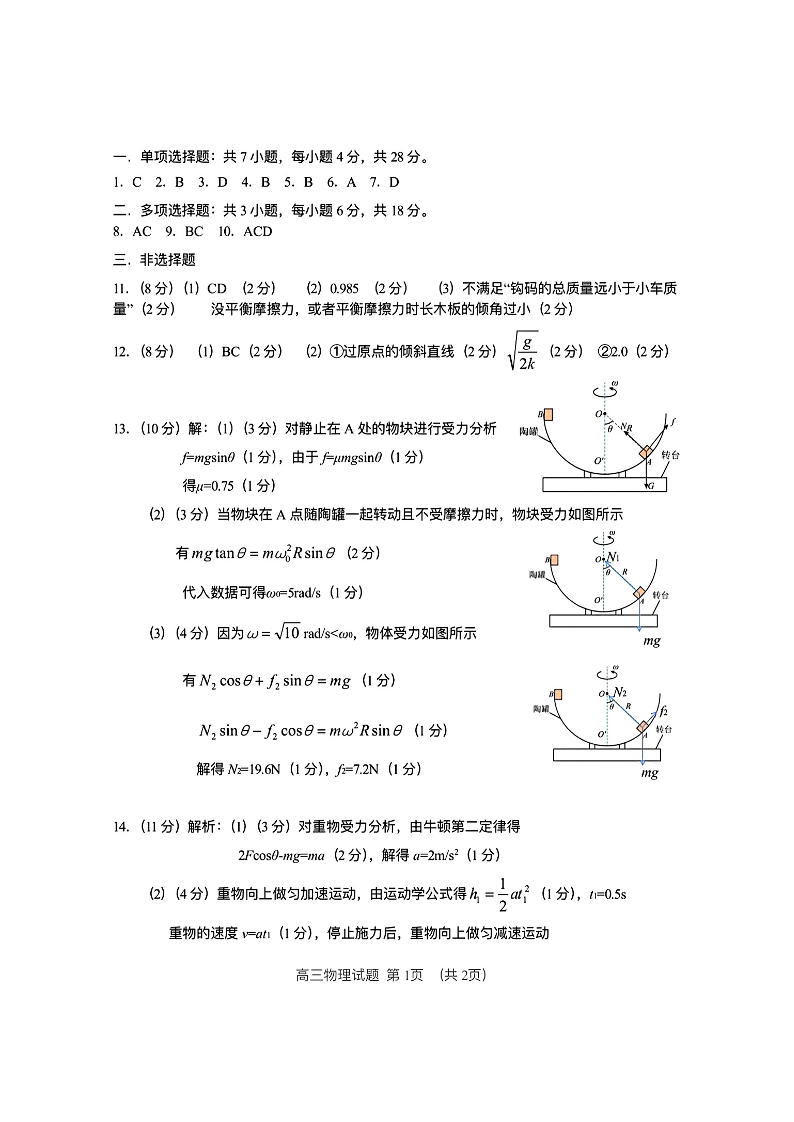 广东省江门市2025届高三上学期10月调研考试物理答案